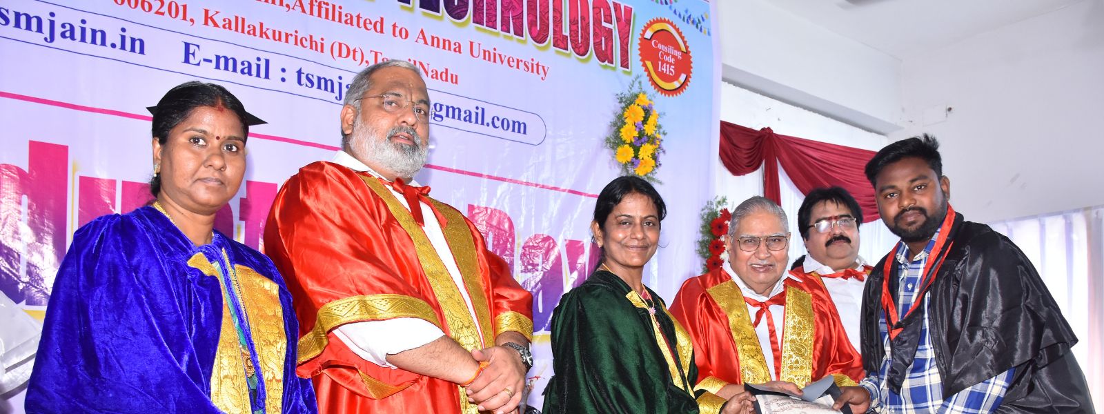 TSM Jain College of Technology, was established by an eminent educationist and philanthropist, Shri.T.Manohar Kumar Surana, our institution has opened up it realms towards imparting value based on technical education. This prestigious institution made its humble beginning on 4th September 2010 with approval of AICTE, New Delhi and affiliated to Anna University Chennai.